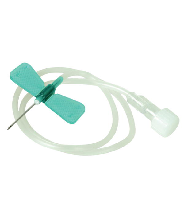 Scalp vein set is a tool for either drawing blood from a vein or administering IV therapy into a vein. It’s also known as a winged or butterfly set.